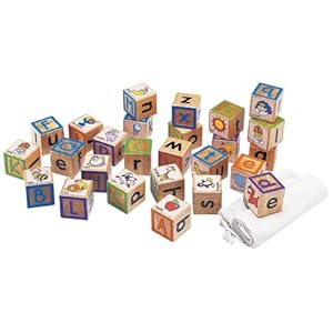 These classic Wonderworld Eco-Friendly ABC Touchy Blocks are absolutely beautiful and the embossed/textured, laser-etched surface on each block will allow children to touch and feel the letter shape, adding to learning value as they discover the alphabet and words with first letters. Each block has cute colorful pictures and have upper and lower case alphabet letters. Each block is 1.8 x 1.8 inches, so they're the perfect size. A strong fabric storage bag is included.The Wonderworld Eco-Friendly ABC Touchy Blocks is: Made in Thailand from environmentally friendly rubber wood and strictly using non-toxic paints, dyes and lacquers from formaldehyde free glue. Packaging is made from at least 70 % recycled paper.Smart Gear designs, develops, manufactures and distributes eco friendly, award winning, fun, innovative and educational products for children age birth and up. Our product range includes: Wooden Balance Bikes, Rockers, Ride-Ons, Walkers, Blocks, Sorters, Stackers, Teethers, Push ; Pull toys, Mini Vehicles, Pretend Play, furniture and more! Smart Gear is a strong advocate of protecting the environment. We take great pride in bringing award winning, safe, fun and educational products to children around the world. We are committed to the highest standard of safety ; quality for all of our products and packaging. We have been and will continue to be proactive in the testing of our products.