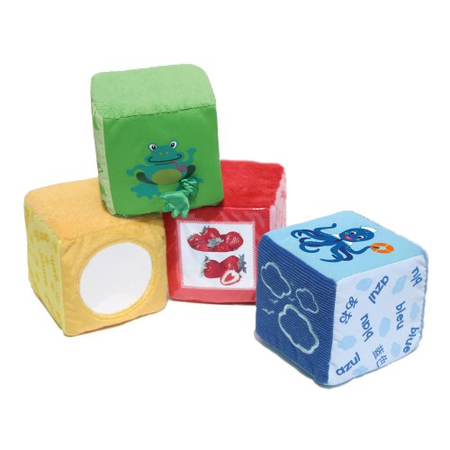 Baby Einstein Discover and Play Color Blocks are soft, textured blocks that are perfectly sized for tiny hands to hold. Each block features a Baby Einstein character including the duck, frog, robin and octopus, real-life photography, objects from baby's world and a stimulating, developmental feature. The developmental features include pulling frogs leg for vibration, baby-safe mirror, and jingle and rattle sounds.