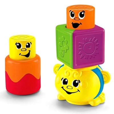 Baby can easily stack blocks on the friendly rattling bee, then bring them to life. Smiling faces pop up to delight baby with surprise peek-a-boo action! Includes one rattling bee block and two peek-a-boo, pop-up blocks.