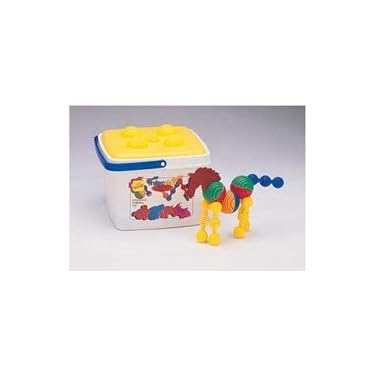 4 animal heads*, 9 long straights, 9 small straights, 12 twistable balls, and a plastic storage container with build-on lid. *Bear, Dog, Horse, Rhinoceros Illustrated leaflet with more construction thoughts included in each set.